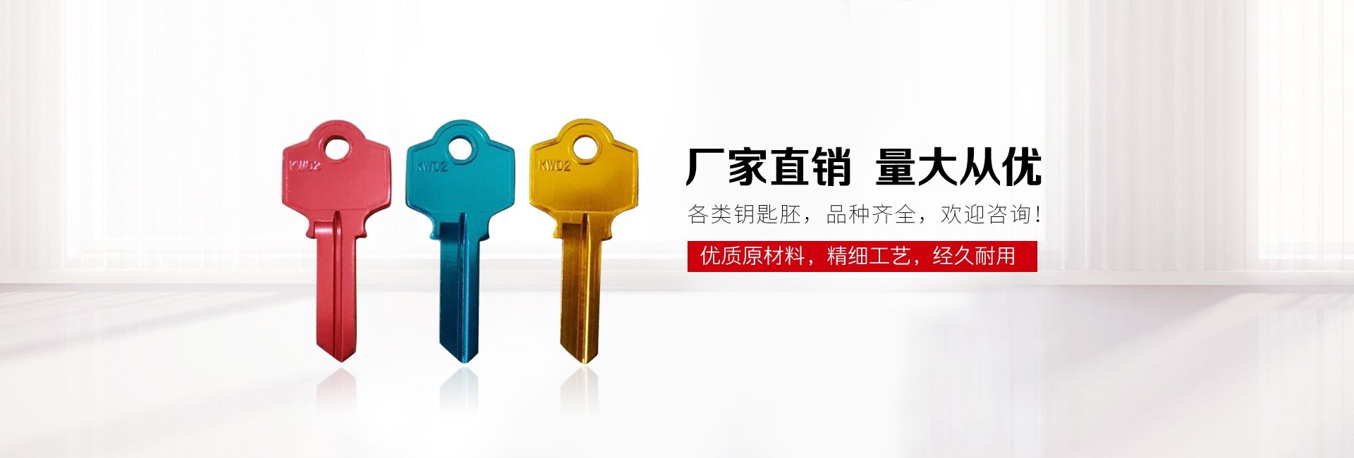 公司專業(yè)生產(chǎn)各種規(guī)格的鑰匙坯,品種規(guī)格已達(dá)上萬種,年產(chǎn)量達(dá)2億把的規(guī)模,客戶遍布全國各地,并遠(yuǎn)銷歐美中東二十多個國家和地區(qū)。。